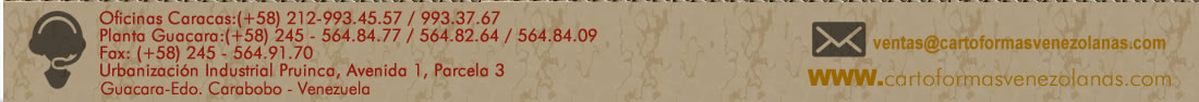 Empresa dedicada a la fabricación de soluciones en Cartón Corrugado y Cartulina para el mercado nacional con operaciones desde Guacara Estado Carabobo y oficinas en Caracas Venezuela les da la Bienvenida a este sitio donde podrá conocer mas detalles de nuestros Productos y Servicios. |